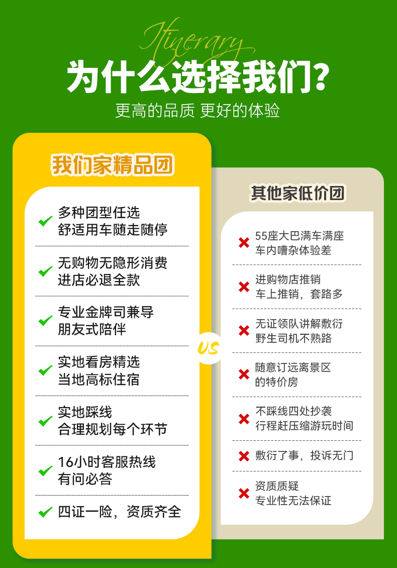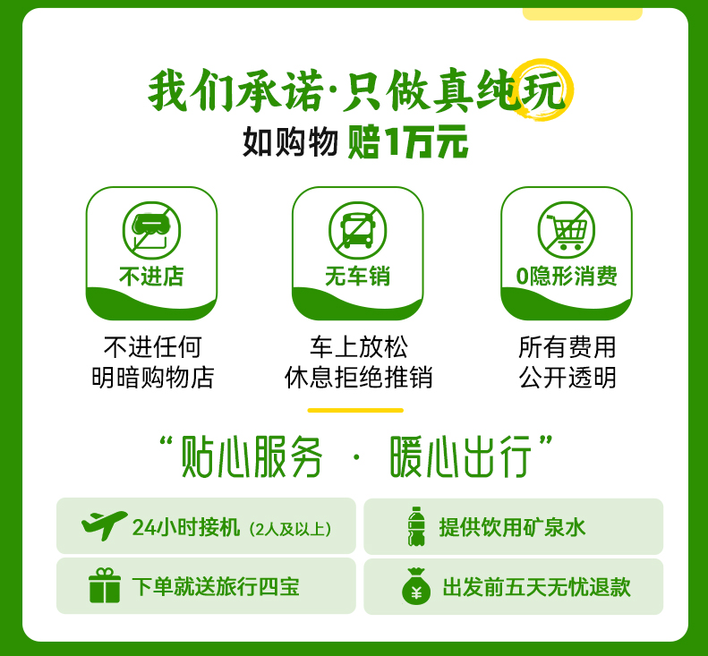 7、 出游过程中,如产生退费情况,以退费项目旅行社折扣价为依据,均不以挂牌价为准。