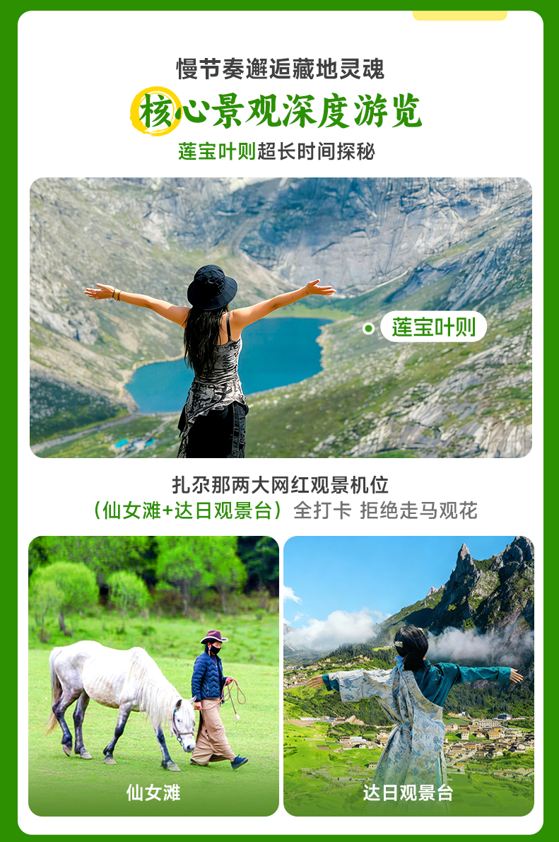 早餐后,我们进入中国ZUI具潜力的秘境美景【莲宝叶则】(车程约180公里,用时约3.5小时,游玩约4-5小时)。莲宝叶则风景区山峰平均海拔在4000米以上,是藏区著名的神山。莲宝叶则藏语意为:尊严的玉石之峰。其内奇峰兀立,云雾缭绕,湖泊星罗棋布。我们将徒步至海拔4250米的【扎尕尔措湖】,欣赏圣湖与刀劈斧削的冰川角峰的完美结合,并自愿挑战【4520观景台】,将这片雄伟奇崛的石山镜湖尽收眼底。游玩结束前往各莫寺。