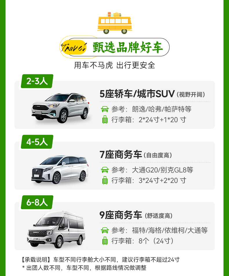 注:以上行程时间及顺序供参考,受天气、交通、景区调控及队员体能等不同影响有可能会调整,以领队实际安排为准。