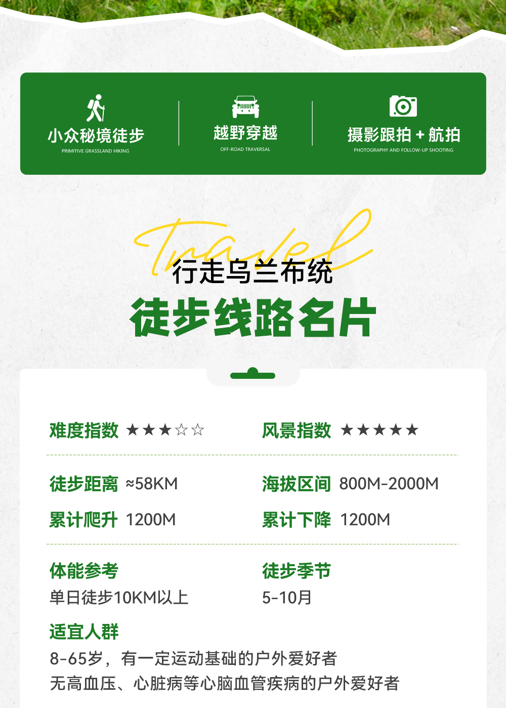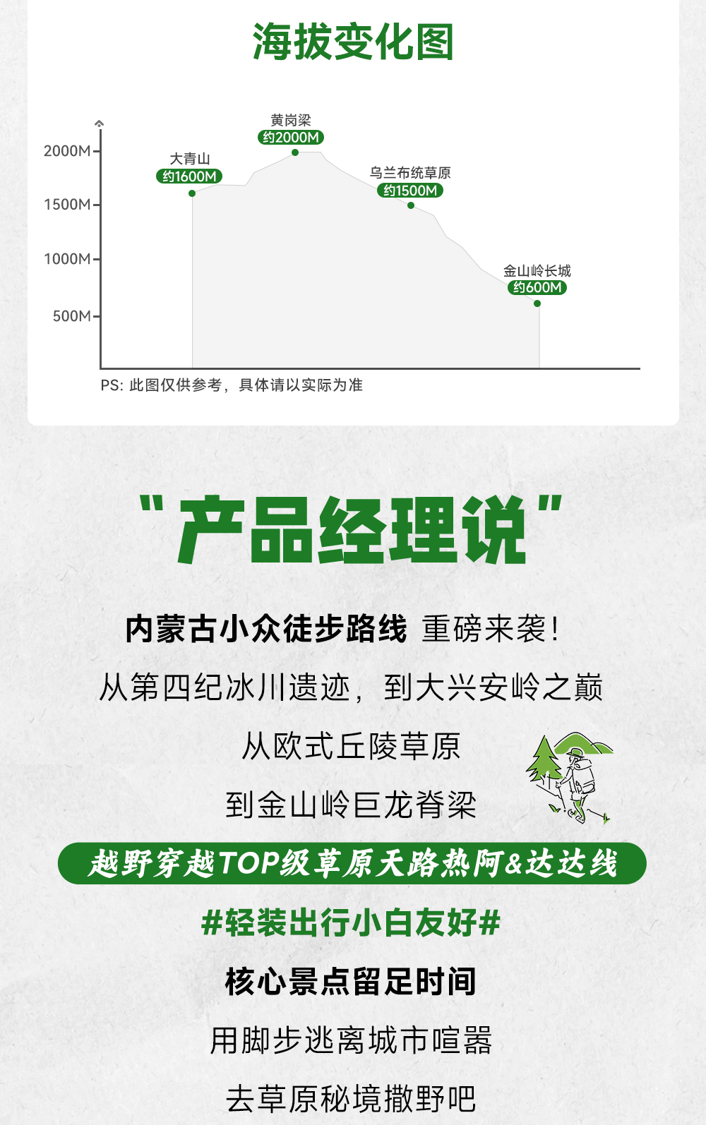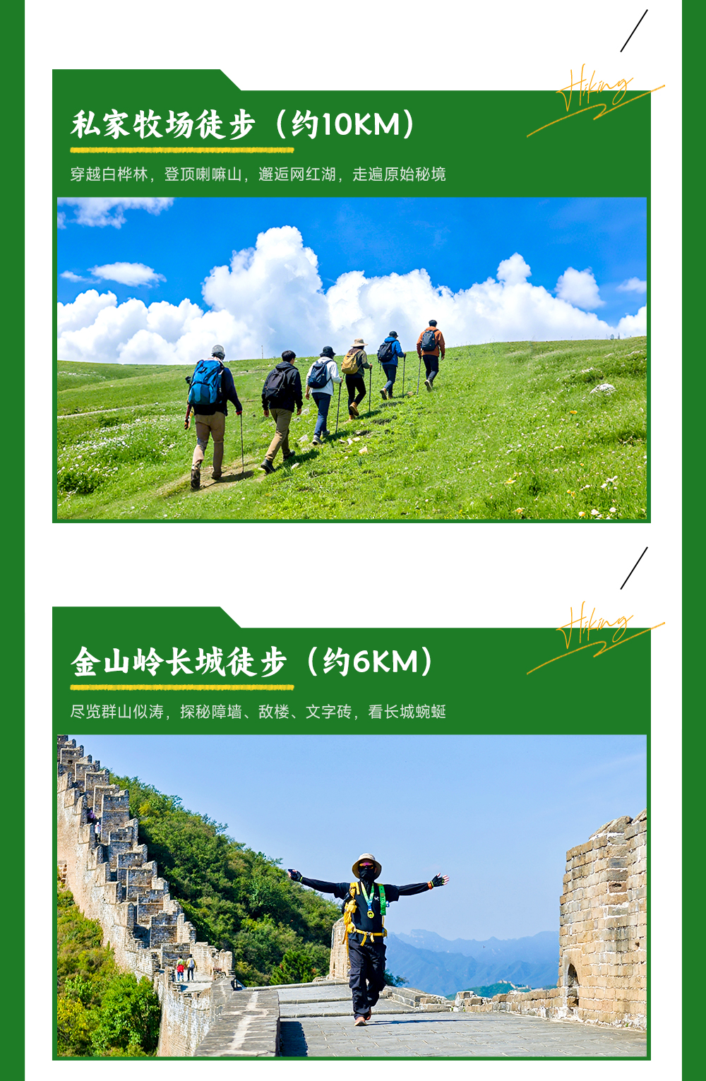 4、门票:乌兰布统首道门票、金山岭长城首道门票、徒步路线进山费;