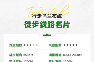 今日徒步为穿越路线,全程约16公里,累计爬升450米,累计下降820米,徒步平均用时约6-7个小时,为初级难度。