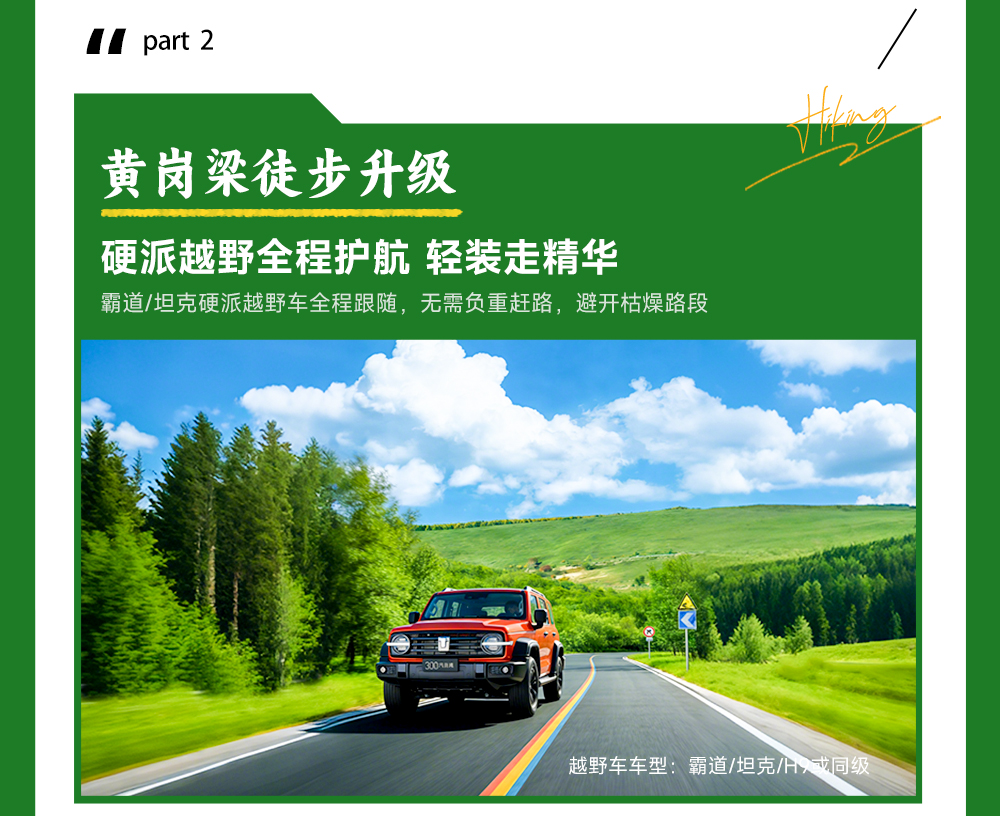 2、越野:黄岗梁徒步全程越野车跟随保障(四人一车);