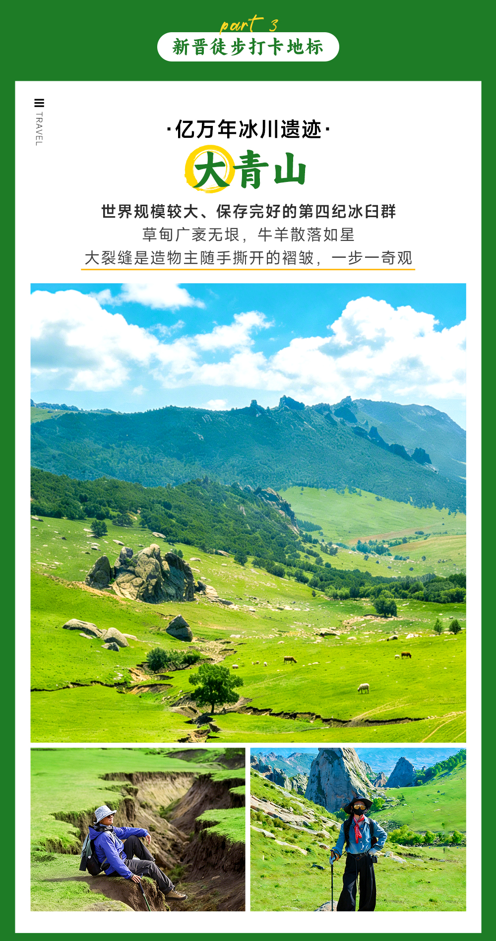 早餐后,乘车前往【大青山】(车程约3h,约230km),开始今天的徒步旅程(徒步约16km),被誉为“天然地质博物馆”的大青山,是第四纪冰川遗址,以其主峰近千米的海拔,更添几分壮美与雄浑。村口土路出发,沿溪流草甸缓行,脚下是松软草甸与碎石小径,沿途奇石错落、溪流潺潺,牛羊悠然散落,山野气息扑面而来。山谷里牛羊成群,自然和谐,网红大裂缝深邃如火星表面,草甸与峡谷交织成电影级画面!穿越亿万年地质奇观,随手一拍就是《星际穿越》同款大片!