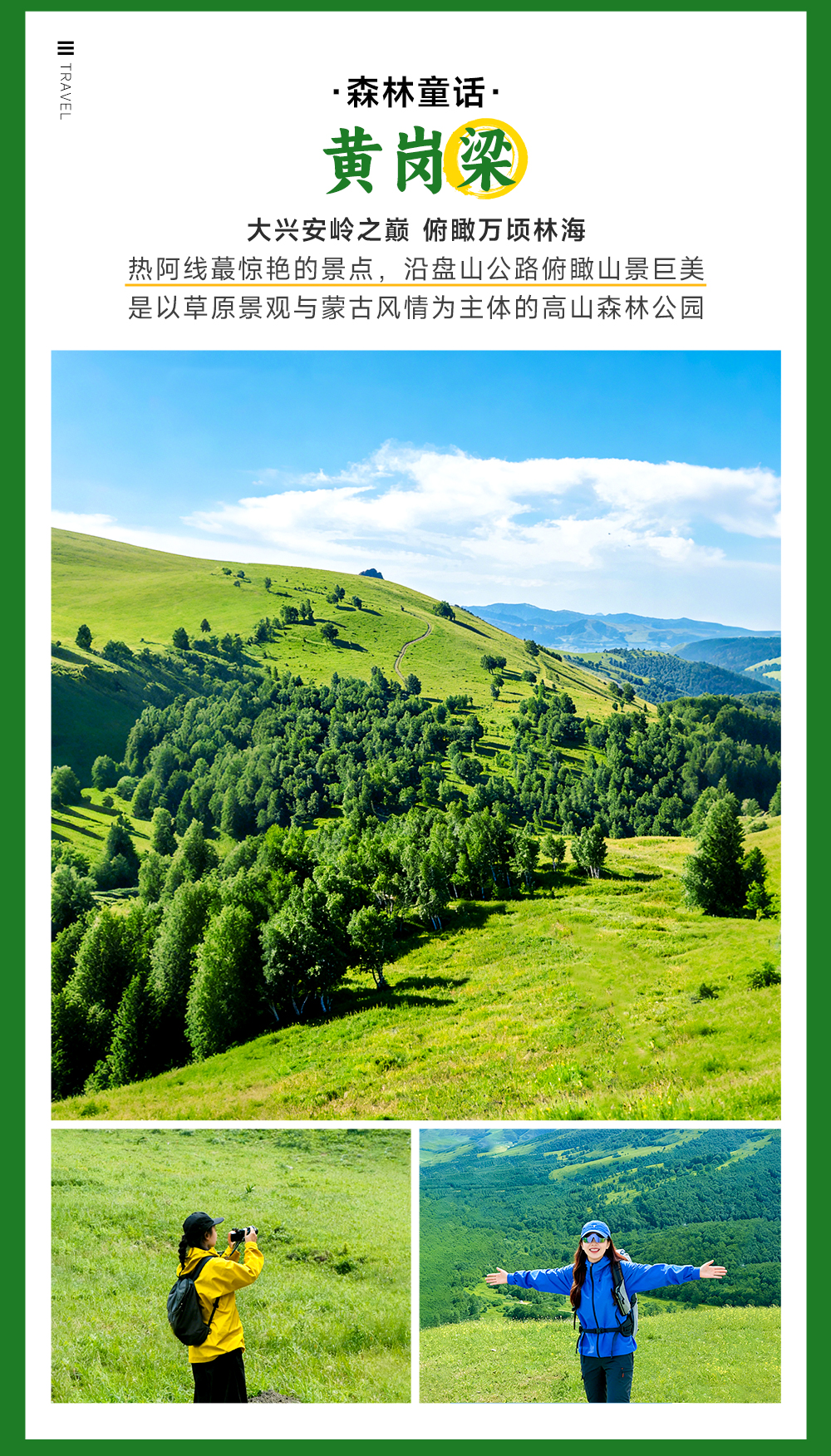 乘坐越野车进入热阿线,随后一起徒步【大兴安岭之巅—黄岗梁】(徒步约10km),黄岗梁主峰海拔2029 米,为大兴安岭之巅,这里是华北保存完整的原始林海,白桦、落叶松、云杉层层叠叠,森林与草原无缝衔接,被誉为 “塞北阿尔卑斯”。黄岗梁境内山势高峻,自然景观丰富多样。景观多为落叶松或云杉林,树木生长旺盛,森林气氛浓郁,是塞北地区罕见的天然森林群落。