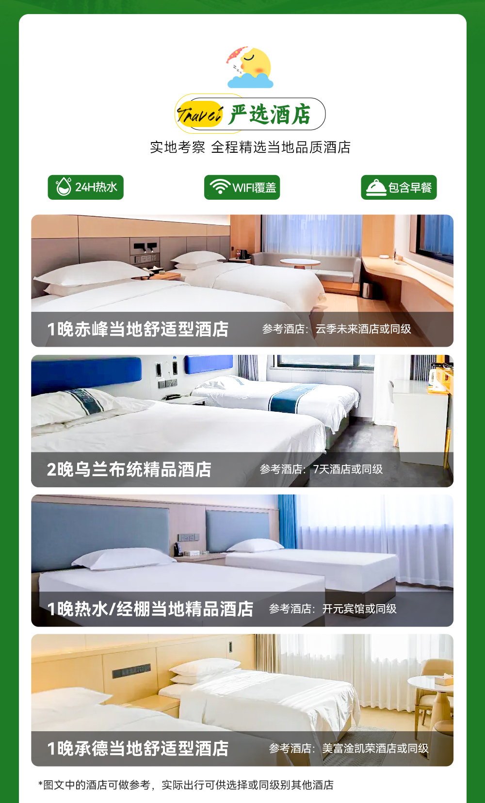 2、可免费乘坐北京至赤峰的摆渡巴士(车程约6小时),此为赠送内容,准时准点发车,过时不候;