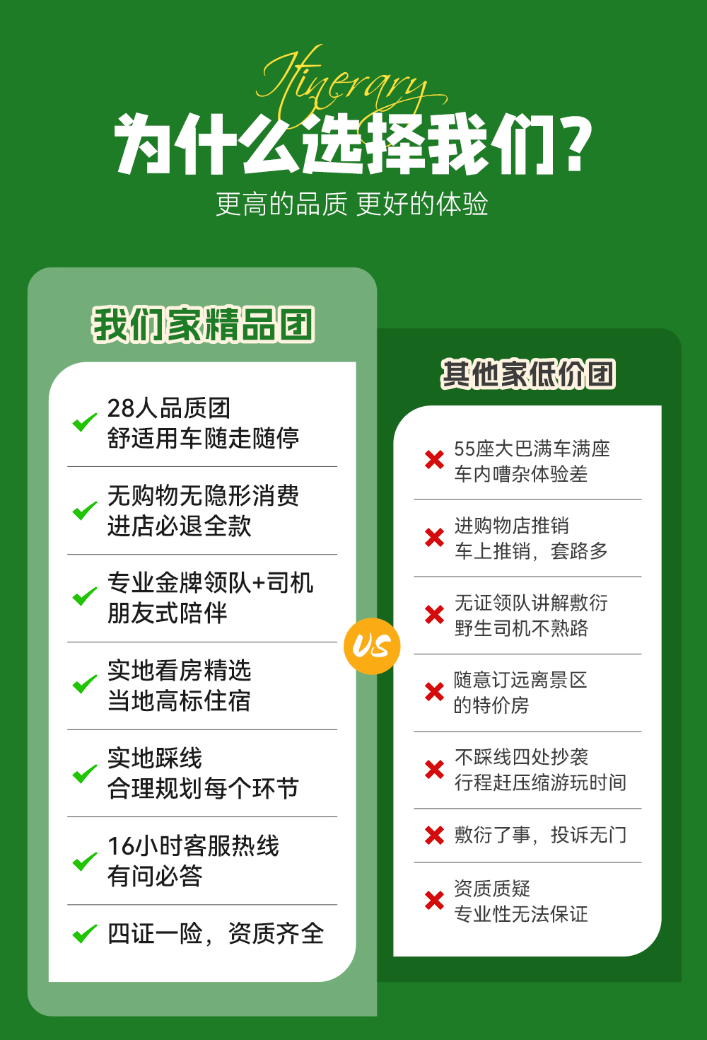 7、 出游过程中,如产生退费情况,以退费项目旅行社折扣价为依据,均不以挂牌价为准。