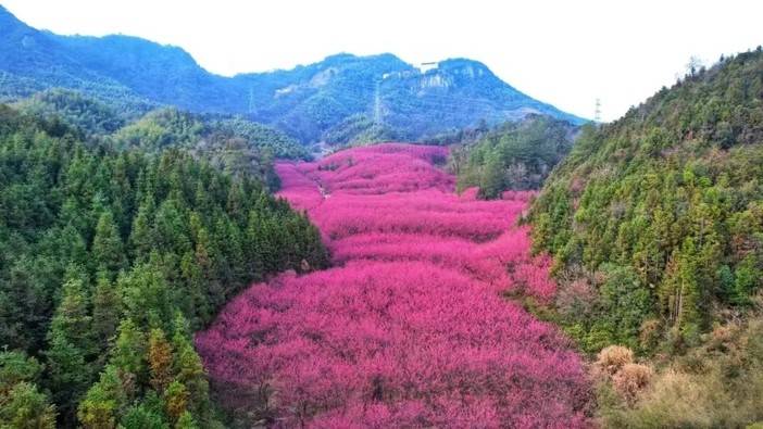 春风轻拂处处暖樱花怒放满枝繁每年三月千亩中国红樱在米积村的山间悄然绽放仿佛为大地披上了一层粉色的轻纱一同走进这片浪漫的樱花海洋感受春日的温柔与诗意当晨雾漫过玲珑街道米积村的青瓦白墙,整座米积山正酝酿着一场红色的视觉盛宴。每年三月,上千亩的中国红樱和寒绯樱在这里竞相绽放,一片玫红色的花海从山谷向两边山坡蔓延开来;目光所及之处都是那“耀眼的中国红”,美到无法用语言来形容。初春的梅花谷,春风和煦,30多亩...