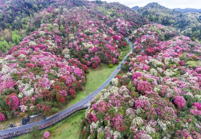 旅行的始点,就在贵州毕节这个小众城市的山脊上。盛放在西北部的杜鹃,连绵百里,姹紫嫣红。这里是世界上唯一的杜鹃花森林公园,有着面积最大,种类最多,保存最好的原始杜鹃林。花开时,全球瞩目。