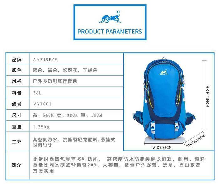 黄蚂蚁MY3801天坛星男女户外徒步登山包双肩背包 38L